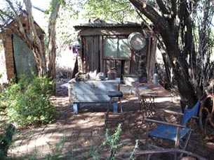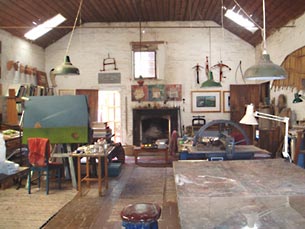 The main studio is housed in the old general store. The walls are sandstock brick and the ceiling is baltic pine with large sky lights. There is a fireplace at one end and shop windows at the other that look out over the landscape and the occasional train that passes not 100 meters away. During the 1930's gold rush the building was a billiard hall and some of the older locals still remember it as a smoky den of ill repute. One locals tells of being led away from it by the ear when he was a child with the warning from the town policeman, "that it wasn't a place fit for children!"